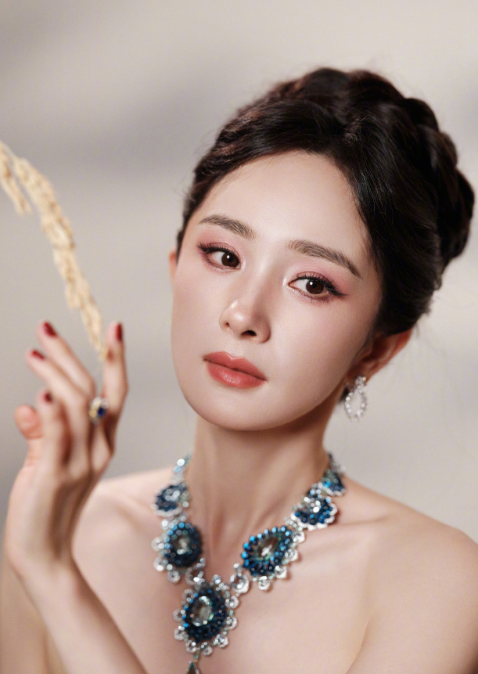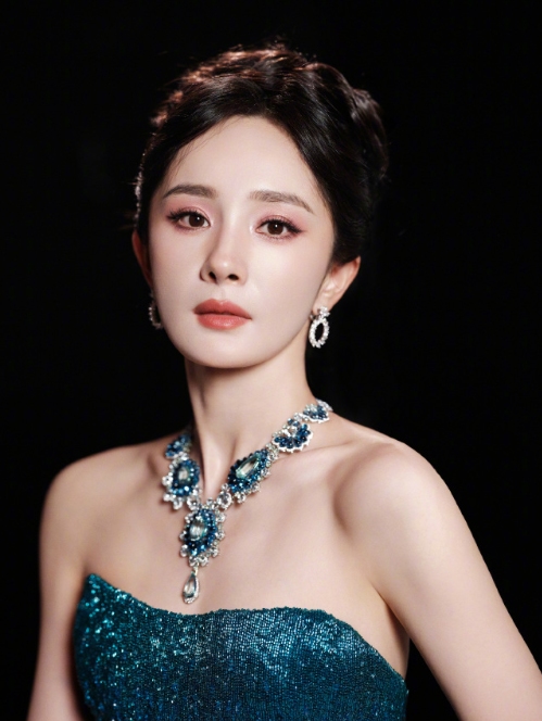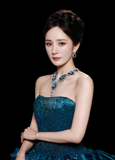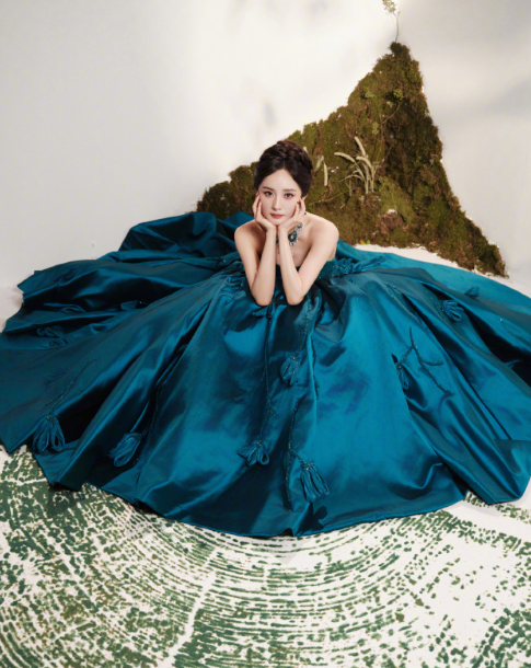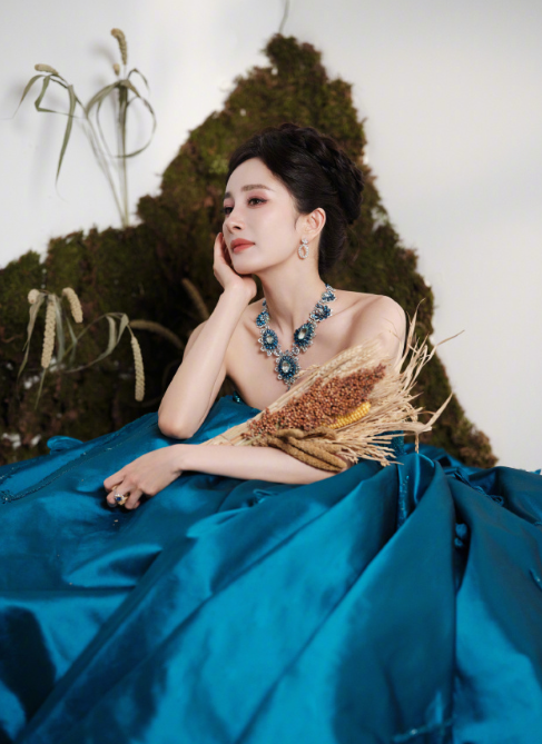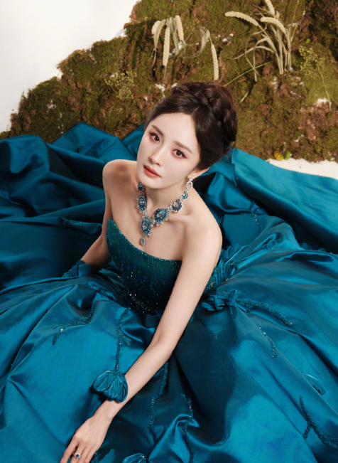杨幂盘发湖蓝色长裙,依旧是让人尖叫的着装!